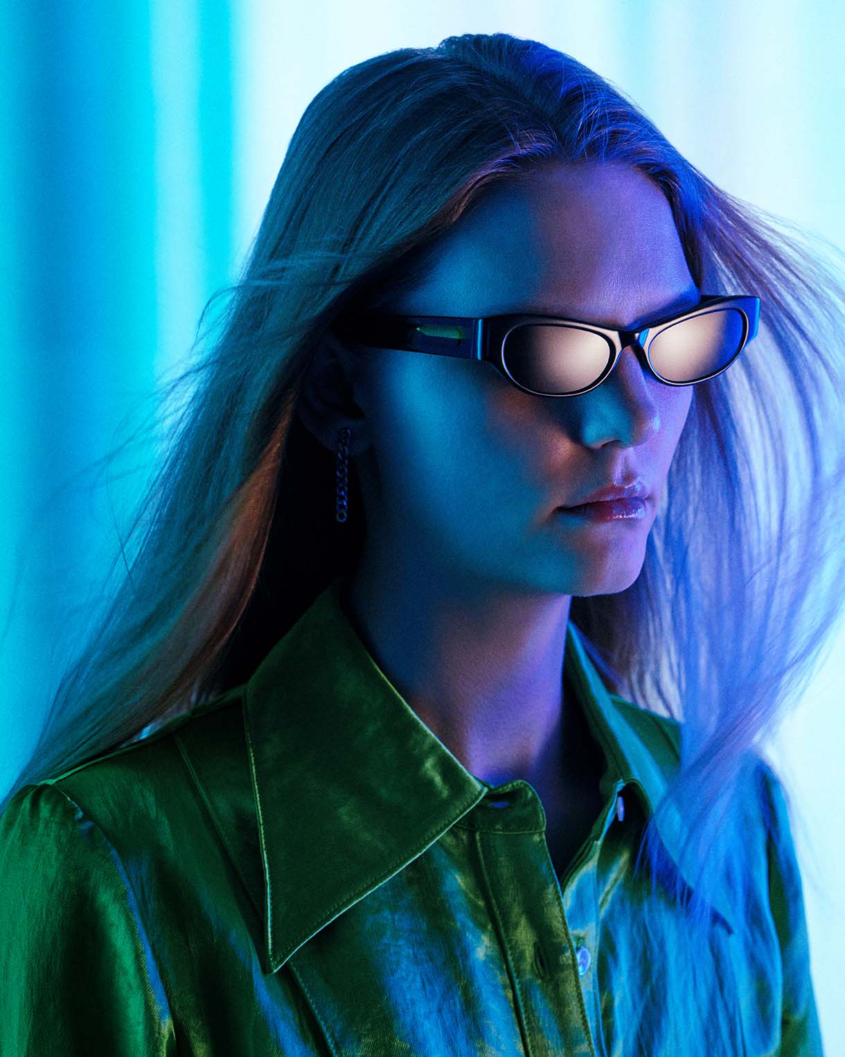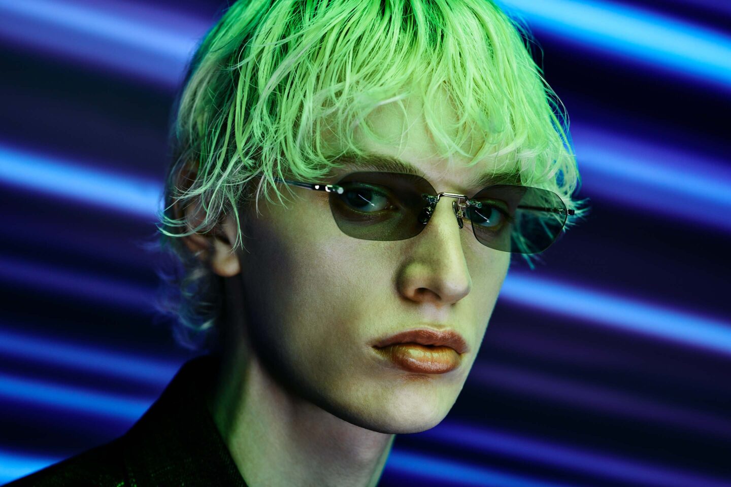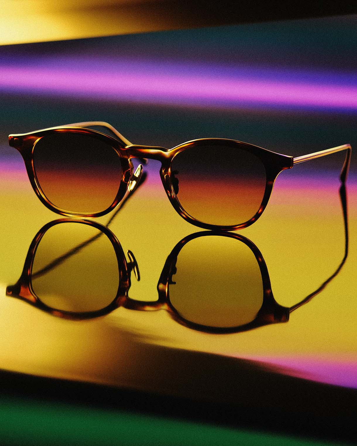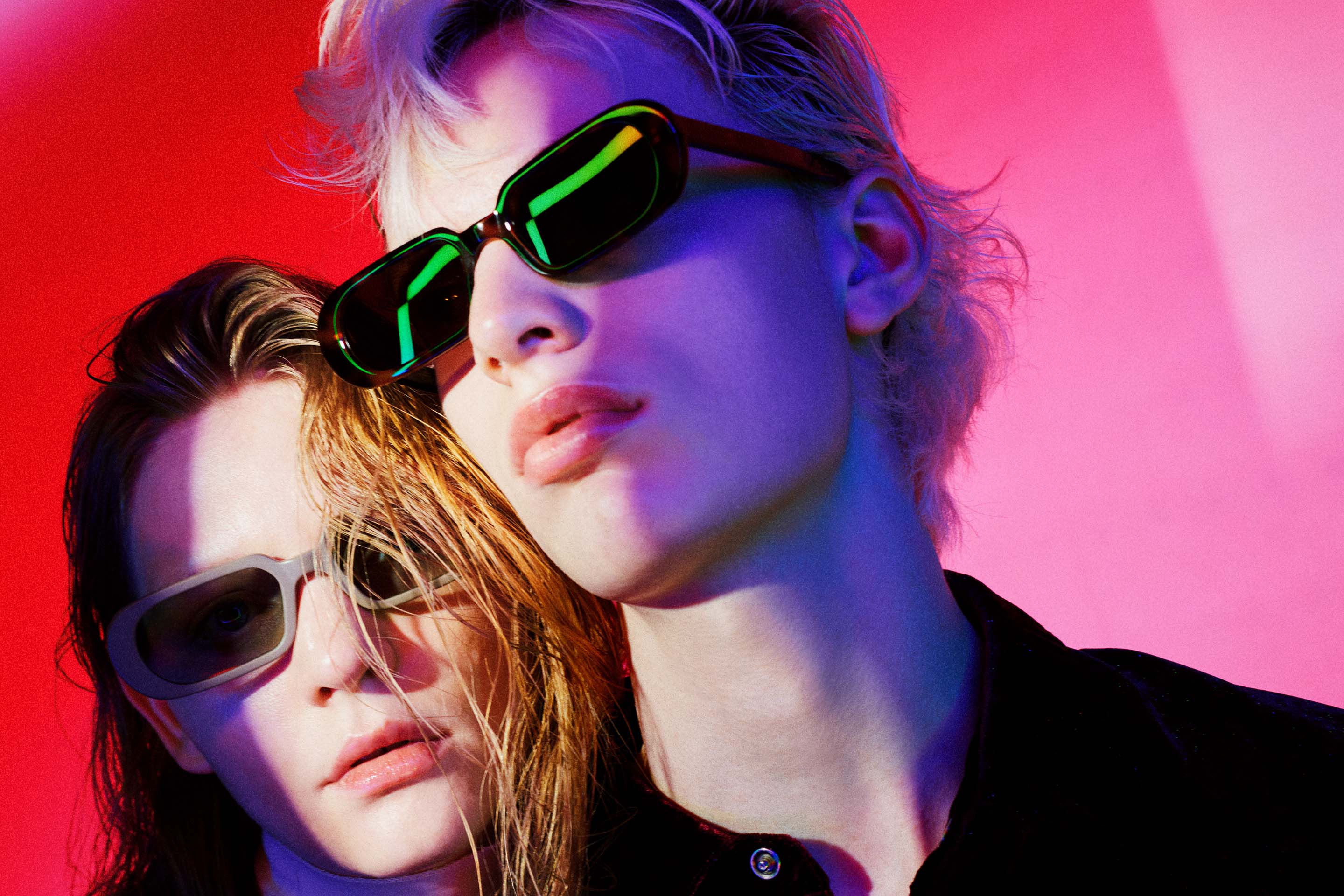 また、LEDスクリーンやカラーライティングを用いて実写で撮影。ダークめなトーンの中にも、春夏らしさを感じさせるカラーリングを意識し、アイウェアを引き立てるアングルとカットで構成することで、A.D.S.R.が持つスタイリッシュかつリッチな世界観を映し出している。