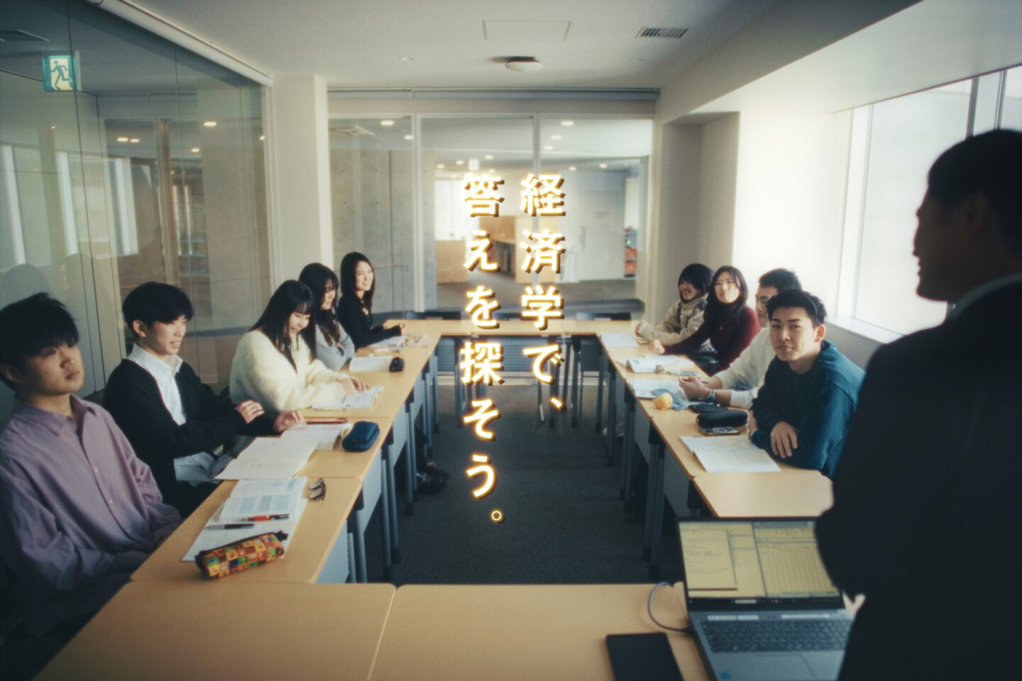 日常生活に潜む経済の視点や、行動経済学的な気づき、そして少子高齢化や環境問題といった現実社会と結びついた学びのフィールドを多角的に描写。経済学が身近で自分ごとであると感じていただけるような構成を意識しつつ、学部の魅力を表現している。