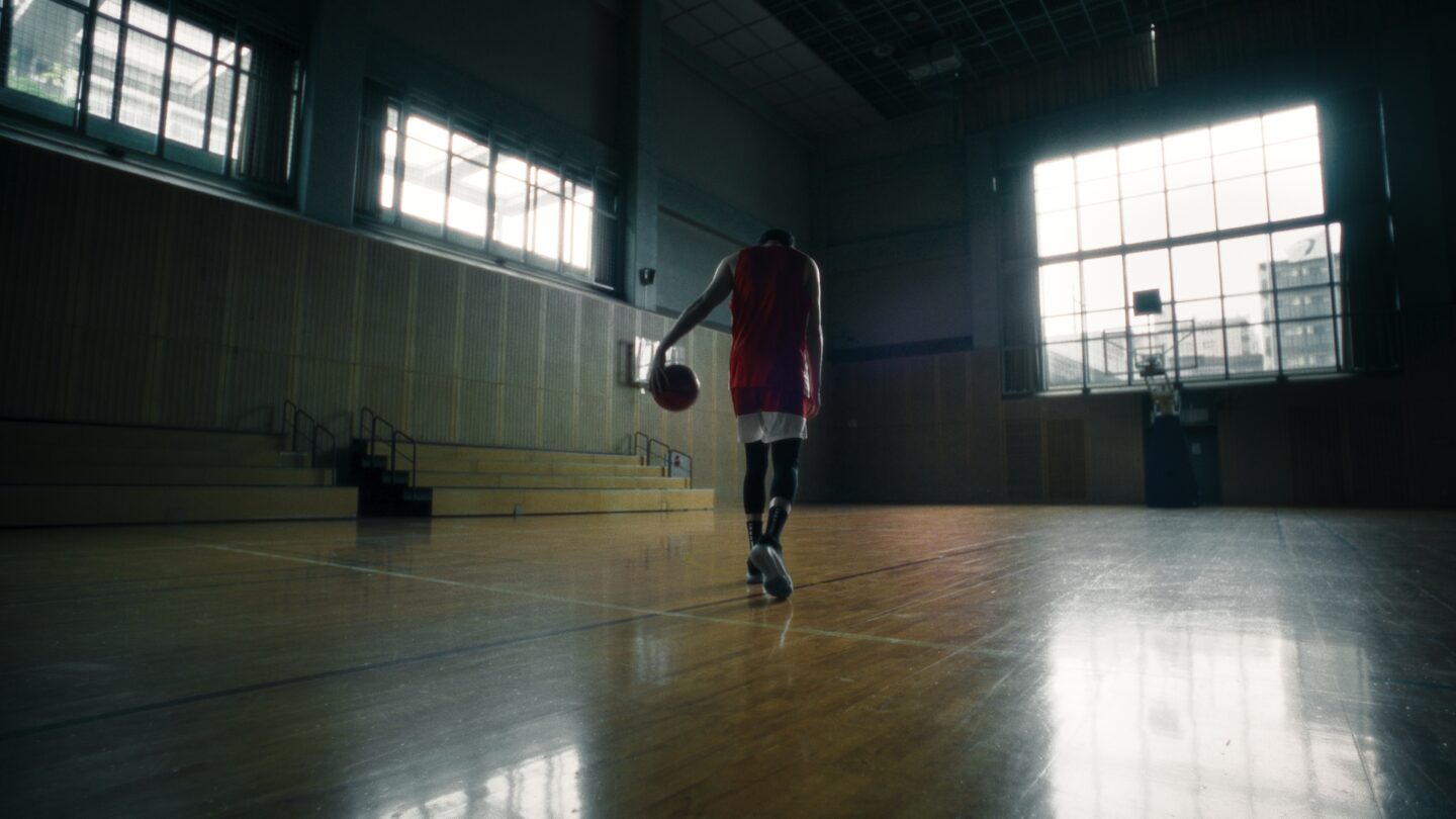ロケーションが持つ明度と色温度を活かし、照明は自然光のみで演出。レンズの特性を起点に、運動量の高い動きを多角的に捉えることで、スピード感と余韻のリズムを表現している。